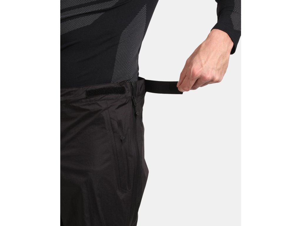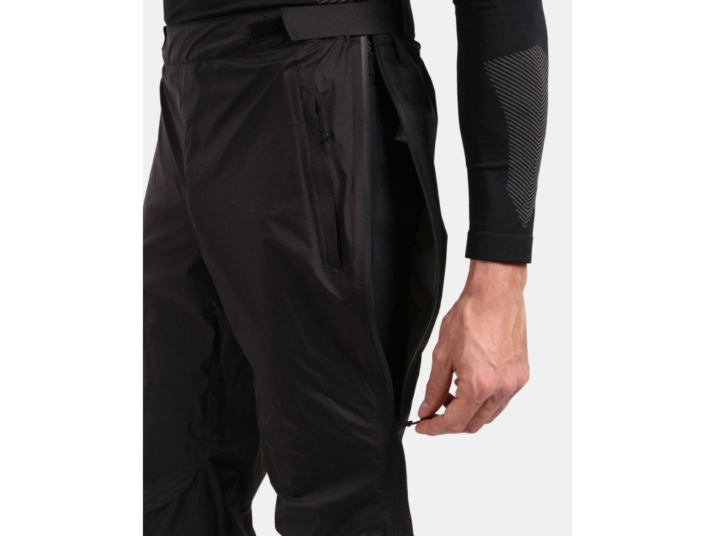 Pánské nepromokavé kalhoty Kilpi ALPIN-M slouží jako ochranná vrstva před větrem, chladem a deštěm. Oceníte je zejména při turistice v horách, na skialpech nebo při ostatních outdoorových a sportovních aktivitách, kde si přejete zůstat v suchu. Největší předností je membránový materiál SIBERIUM s plně podlepenými švy, vysokou voděodolností a prodyšností. Kalhoty lehce sbalíte do pytlíku, který je součástí. Hmotnost kalhot ve velikosti M je pouhých 300 gramů. Další vychytávkou, kterou jistě oceníte v terénu, jsou postranní celorozepínací zipy, díky kterým si kalhoty snadno přetáhnete i přes turistickou obuv. Kalhoty mají volnější střih a pas se stahováním na suchý zip. Spodní lemy nohavic jsou na gumičku, takže dobře drží při přetáhnutí přes obuv. Navíc je lze stáhnout pomocí suchých zipů. Zipy falešné kapsy umožňují přístup k spodním kalhotám. Kilpi ALPIN-M naleznete v nabídce v univerzální černé barvě.Model na fotografii: Velikost M, výška 188 cm, obvod hrudníku 100 cm, obvod pasu 84 cm, obvod boků 97 cm.Doplňkové parametry