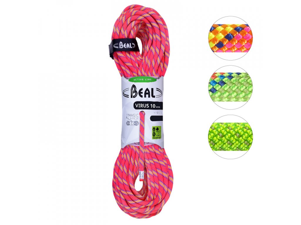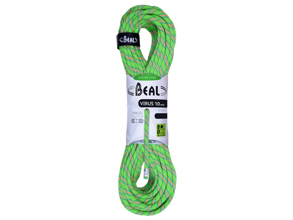 Univerzální lano pro široké spektrum uživatelů o průměru 10mm. Certifikaci má pouze jako jednoduché lano. Určené pro příležitostné, ale i výkonnostní lezce. Díky svému průměru je vhodné pro většinu typů jistítek. Virus 10mm patří do základní skupiny Active Line, která nabízí dokonale vyvážený poměr cena/výkon.