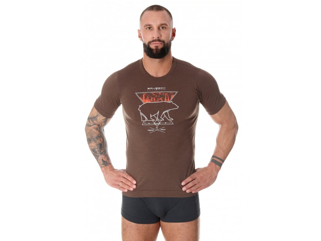 BRUBECK OUTDOOR WOOL PRO Brown tričko s krátkým rukávem