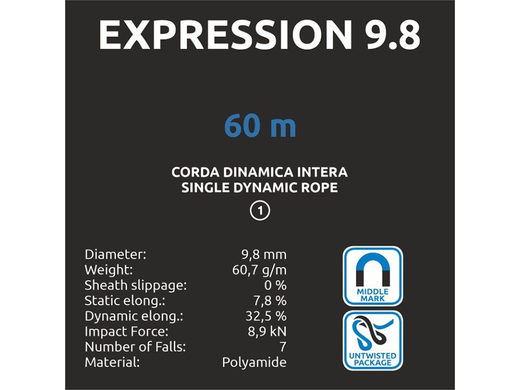 C.A.M.P. Expression je horolezecké dynamické lano s průměrem 9,8 mm. Expression je díky robustnější a odolnější konstrukci ideálním partnerem pro všechny druhy venkovního lezení. Se svým průměrem 9,8 mm nabízí kromě odolnějšího opletu i skvělý handling.