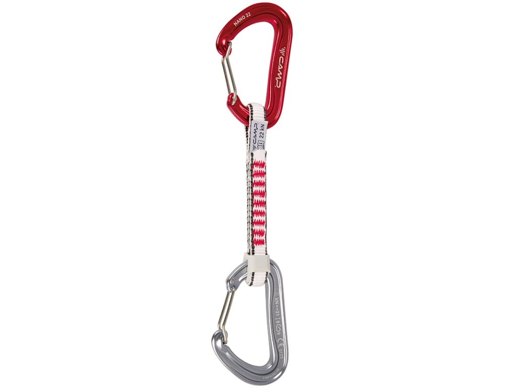 Sada 6 ks TOP ultralehkých expresek pro ty nejnáročnější lezce. Nano 22 Express je kombinací 2 drátových karabin C.A.M.P. Nano 22 a 11 mm Dyneema® smyčky v délce 12 cm, která vyniká svou minimální hmotností a vysokou pevností. Důležitou součástí expresky je doplněk Karstop Evo, který zamezuje protáčení karabiny, kterou prochází lano.