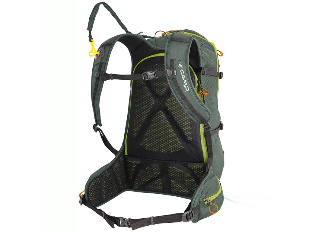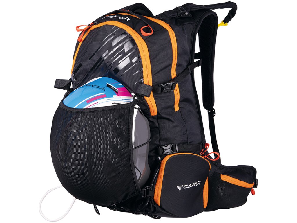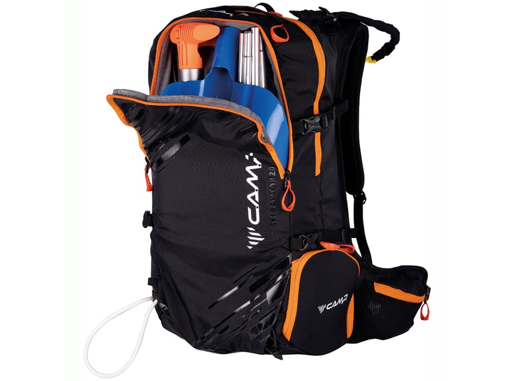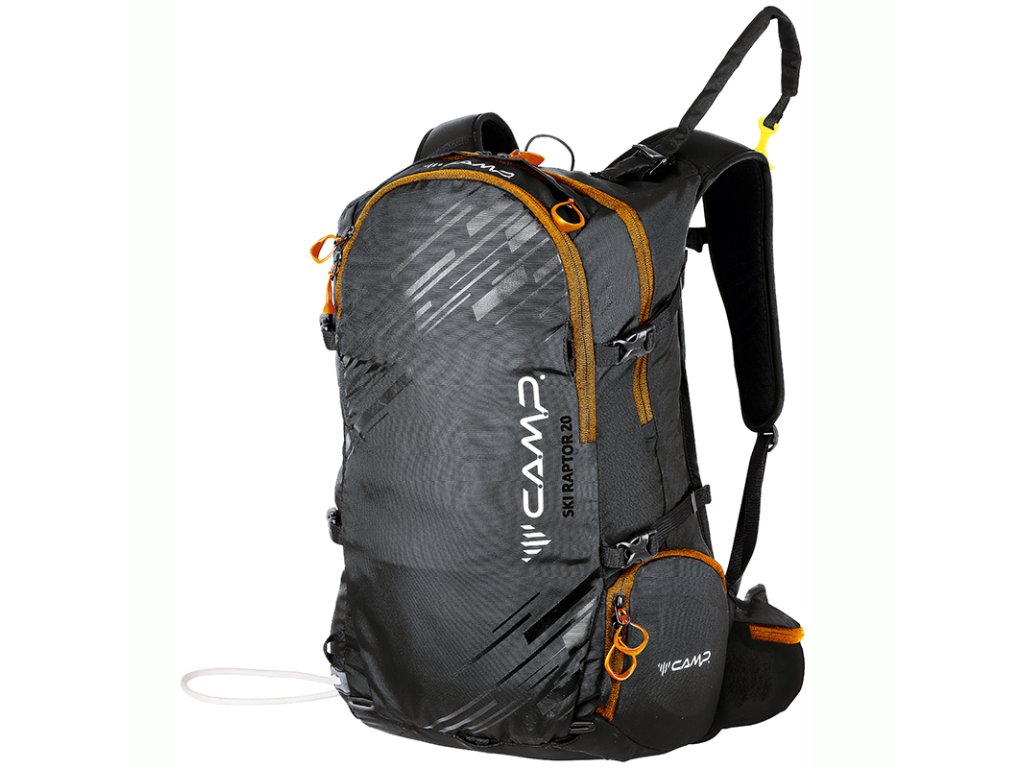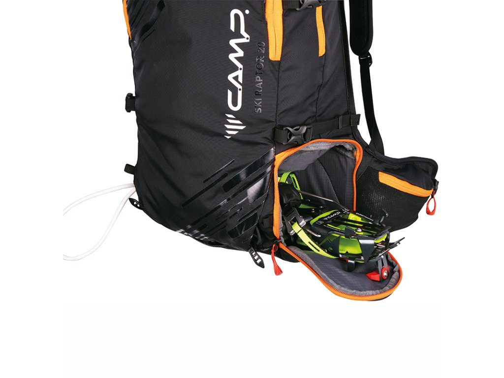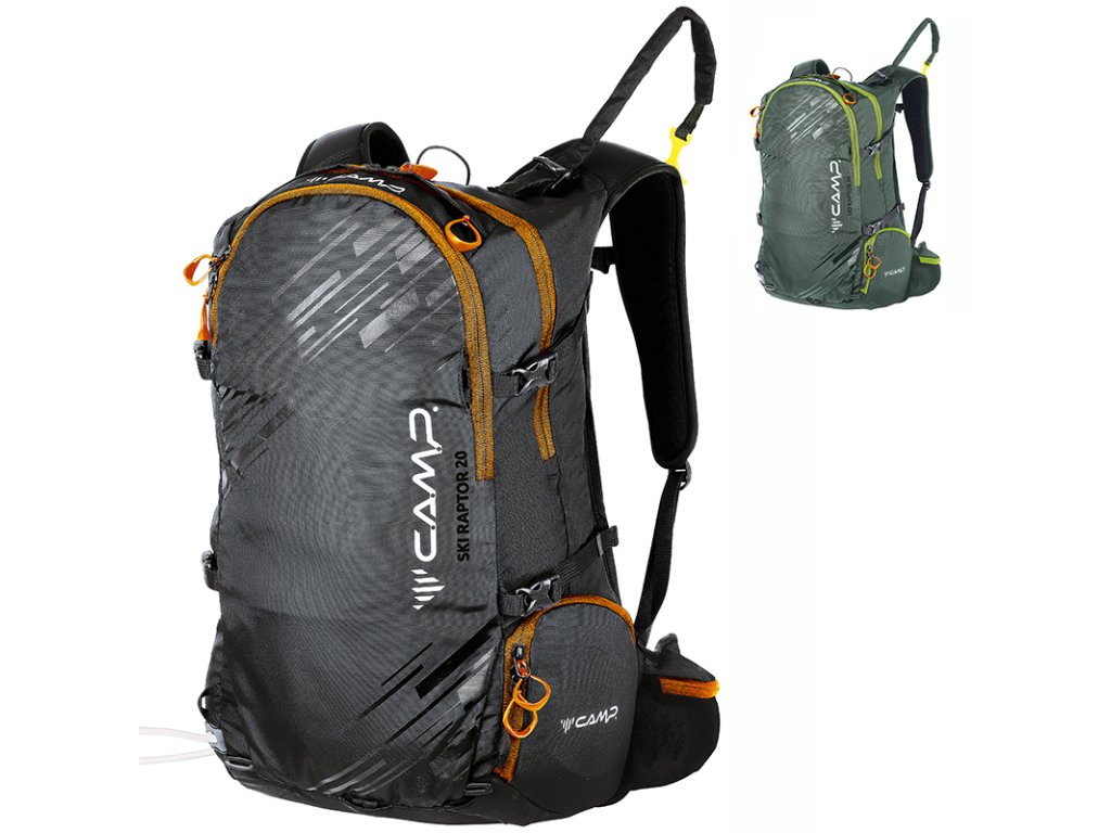 Ski Raptor 20 je ideální pro lehčí, rychlé skialpové freeridové túry. Konstrukční a funkční prvky vycházejí z profesionálních CAMP závodních skialpových batohů. Ski Raptor oproti závodním verzím nabízí polstrovaní zad, ramenních a bederních popruhů a je vyroben z velmi odolné textilie 420D Ripstop nylon. Pro jednoduché a rychlé sundání / nahození lyží, bez nutnosti sundávat batoh, slouží inovativní systém X-Press. Systém X-Press lze nastavit do dvou poloh pro snadnější upnutí lyží i při naplněném / prázdnějším batohu. Další předností batohu Ski Raptor je přístup do hlavní komory přes záda, zipem oddělená komora pro mačky s bočním vstupem, přední kapsa s rychlým přístupem pro lopatu a sondu a doplňky pro uchycení cepínu, hůlek, přilby, či lyží na boční část batohu.