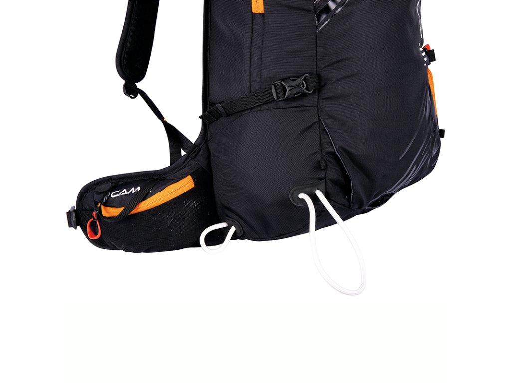 - Lyže lze upevnit i na bok batohu pomocí stahovacích popruhů