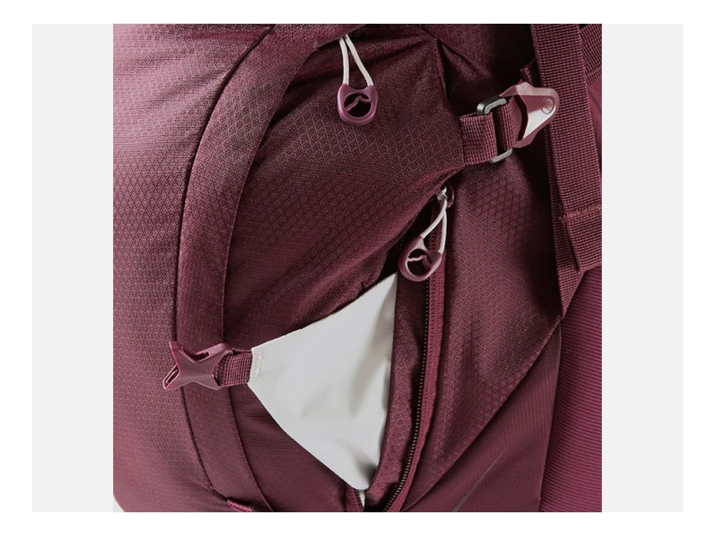 Hole i cepín snadno připnete na batoh. Do postranních kapes zastrčíte láhve s vodou a ke zbytku vybavení uvnitř se rychle dostanete přes velký přední vstup na zip. Takže připravená jste dokonale. Teď už jen vykročit pravou!
