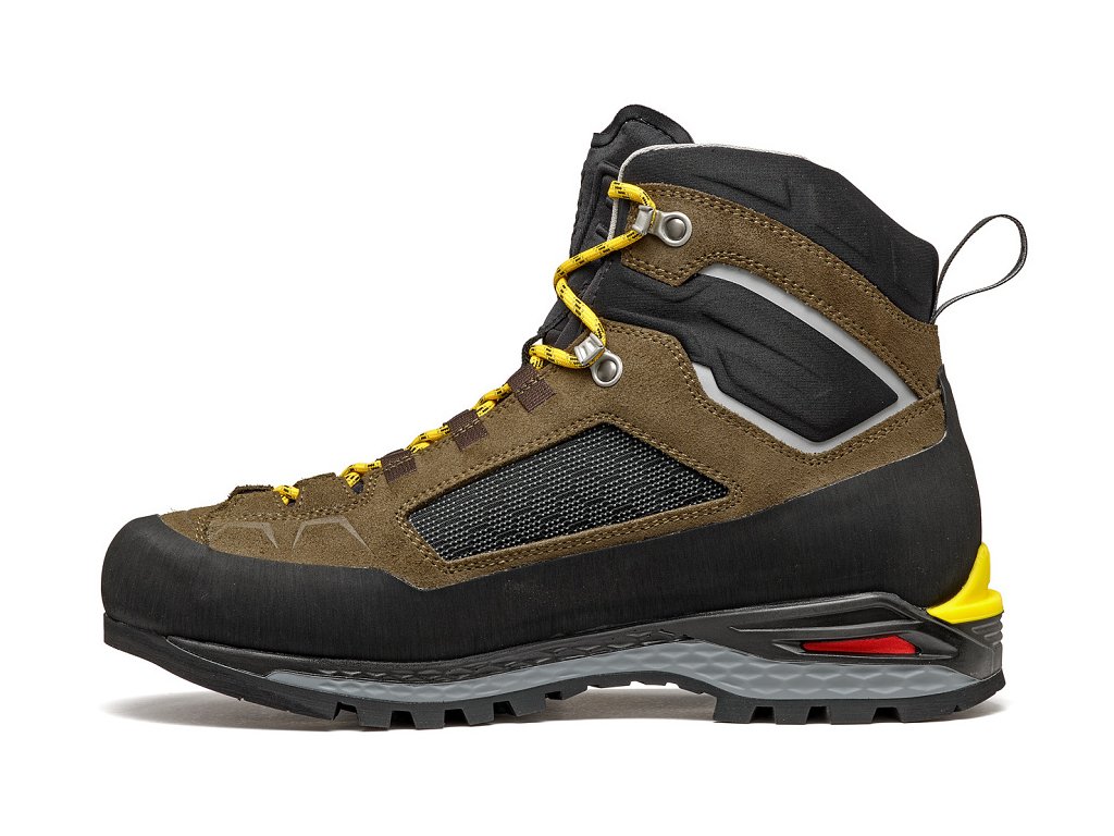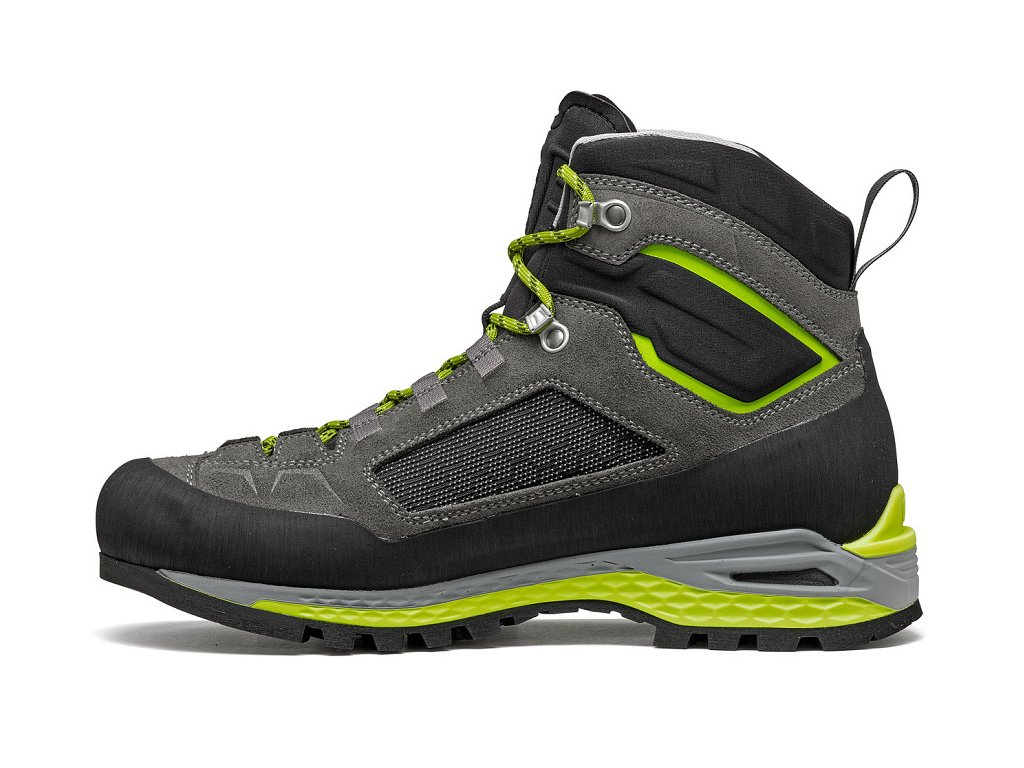 Mezi dveřmi jedné horské chaty a dveřmi chaty druhé tě čekají zbytky ledovce, zrádná suť a spousta lezení po skalních policích a vzdušných žebřících. V tak rozmanitém terénu ti dobře poslouží tyto středně tuhé pohorky. Jejich mírně vyztužená podešev zůstala tak akorát ohebná, aby na ní držely poloautomatické mačky a přitom se v pohorkách dobře kráčelo po všech kozích stezkách a lezlo po skále. Lezecká špička ti navíc pomůže ustát drobné skalní výstupky. Perwanger kůže a odolná tkanina ochrání před újmou tvé nohy i boty samotné. A až se vydáš zpět do údolí, EVA odpružení v patní části odlehčí těžce zkoušeným kolenům.