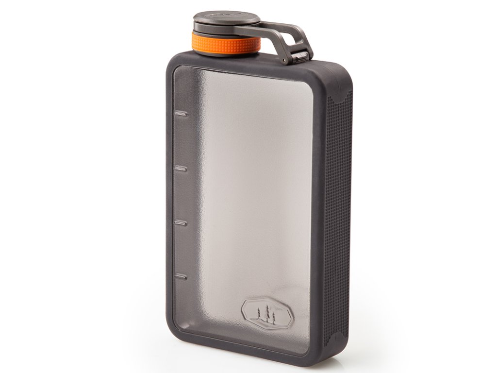 Boulder Flask je stylová průhledná placatka z velmi odolného plastu. Gumové "luby" zaručují jednoduché a pevné uchopení. Uzávěr se širokým hrdlem umožňuje snadné a rychlé plnění a jednodušší vymývání. Díky pogumovanému obvodu uzávěru se dá placatka snadno otevřít i v rukavici. Průhledný design nese výhody v přehledu nápoje při plnění i jeho následném ubývání.