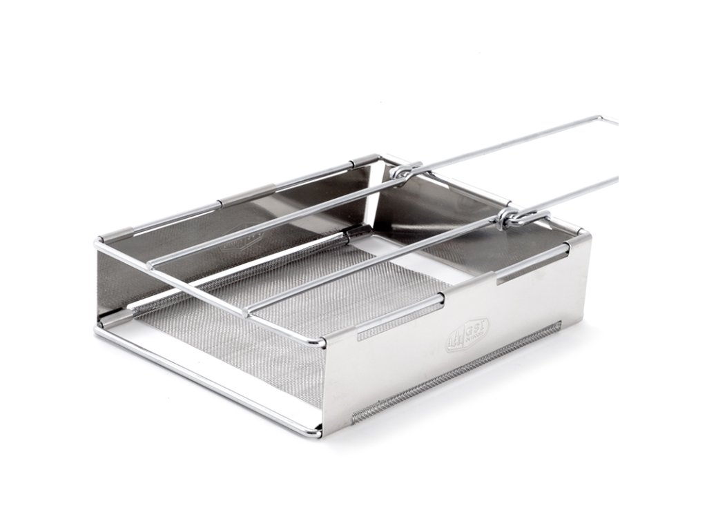 Skládací touster na vařič z nerezové oceli. Ocelová síťka rovnoměrně rozprostře žár pro to nejlepší opečení.