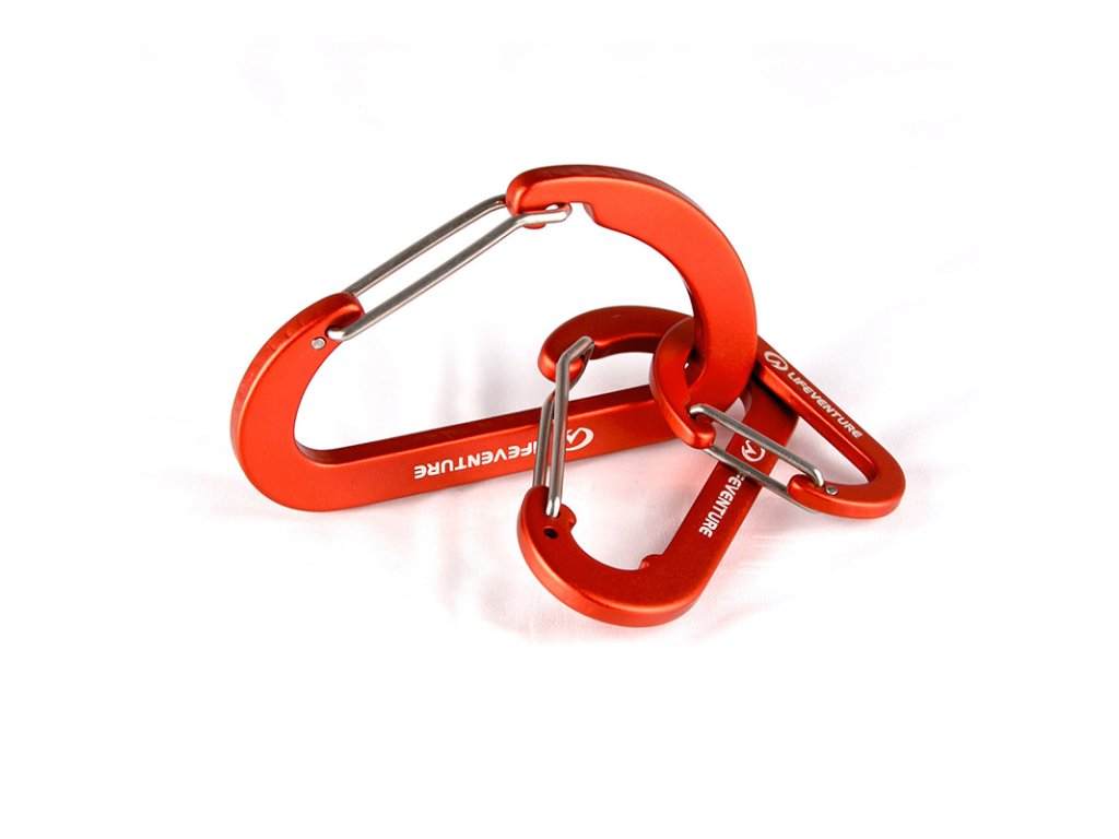 Balení tří užitečných drátových karabin z anodizovaného hliníku. Karabiny využijete pokaždé, když budete potřebovat připevnit vybavení ke svému batohu či opasku.