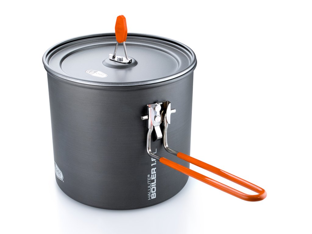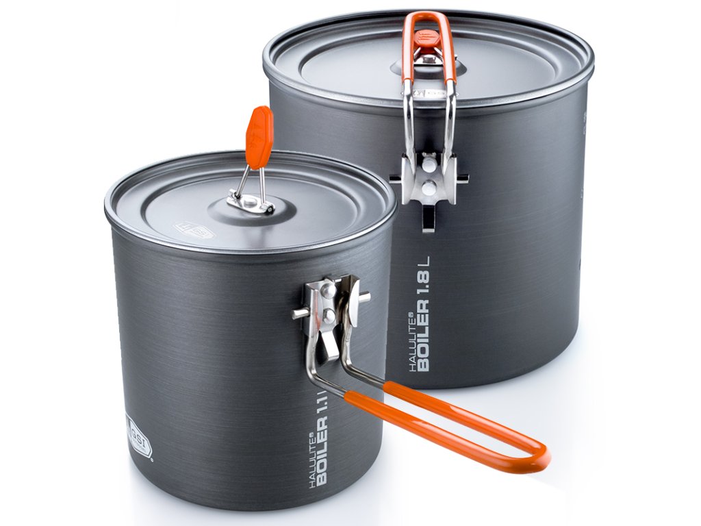 Ultralehký, odolný a kompaktní kotlík na vaření s odklápěcí rukojetí. Kotlík a poklička jsou vyrobeny z tvrdě eloxovaného hliníku, který zajišťuje výborný rozvod tepla i mechanickou odolnost. Odklápěcí rukojeť slouží nejen k bezpečné manipulaci, ale při sbalení bezpečně zajišťuje pokličku. Do kotlíku lze pro úsporu místa umístit i malou plynovou kartuši (např.: GSI Isobutane Fuel) se skládacím vařičem (např.: GSI Pinnacle Canister Stove). Jak kartuše, tak ani vařič nejsou součástí balení. Halulite Boiler je k dostání ve dvou velikostech - 1,1L a 1,8L.