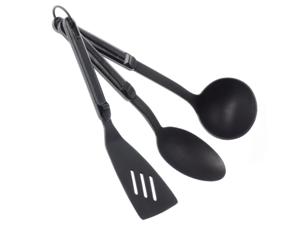 Sada kuchyňského nářadí odolná proti vysokým teplotám, praktická pro každého kuchaře. Na konci rukojetí jsou otvory pro snadné zavěšení.