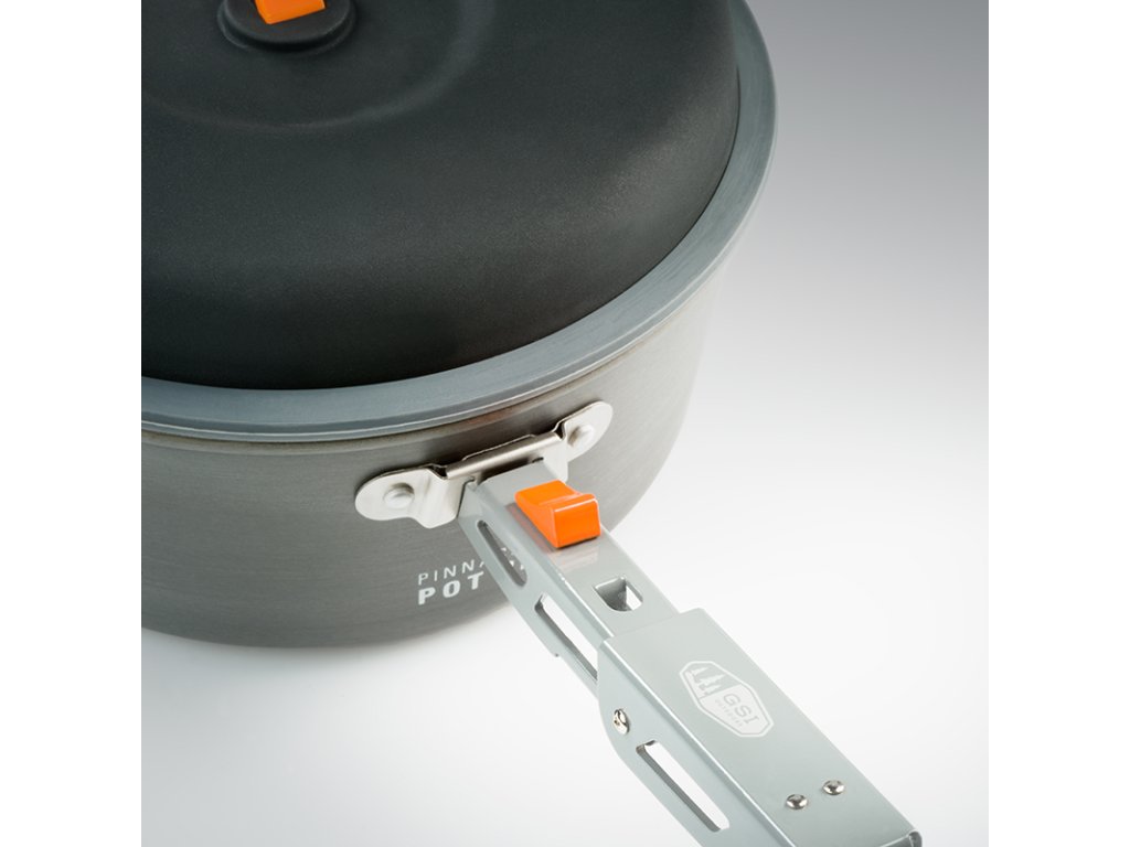 Kompaktní sada kastrolu, hrnečků, mističek, pánve, dřezu pro 2 cestovatele v provedení Pinnacle. Do sady je možné umístit vařič i příborový set (nejsou součástí balení). Poklička z BPA FREE plastu umožňuje bezproblémový únik par z hrnce a zároveň slouží jako sítko například pro slití vody z těstovin. Jednotlivé nádoby jsou barevně odlišené pro snazší orientaci. Pohodlná skládací odnímatelná rukojeť zpříjemní vaření. Hrnky s pítkem jsou opatřeny neoprénovým termoizolačním obalem. Pánev může také sloužit jako poklička. Obal celé sady lze použít jako nádobu na vodu nebo jako umyvadlo pro umytí nádobí.