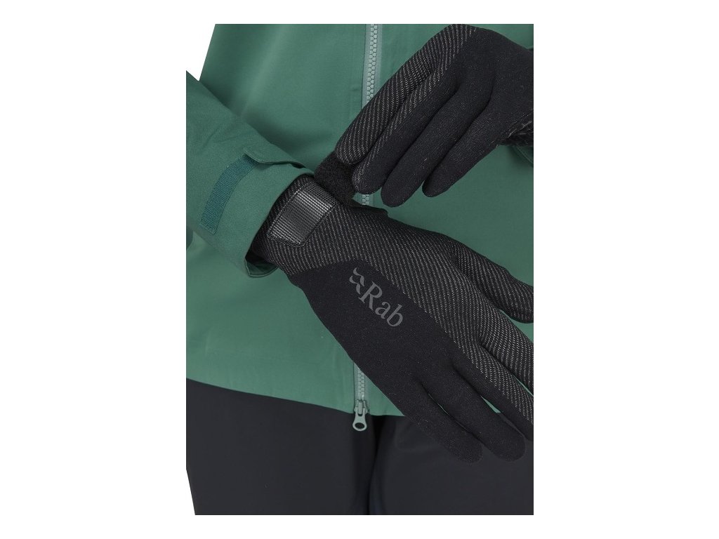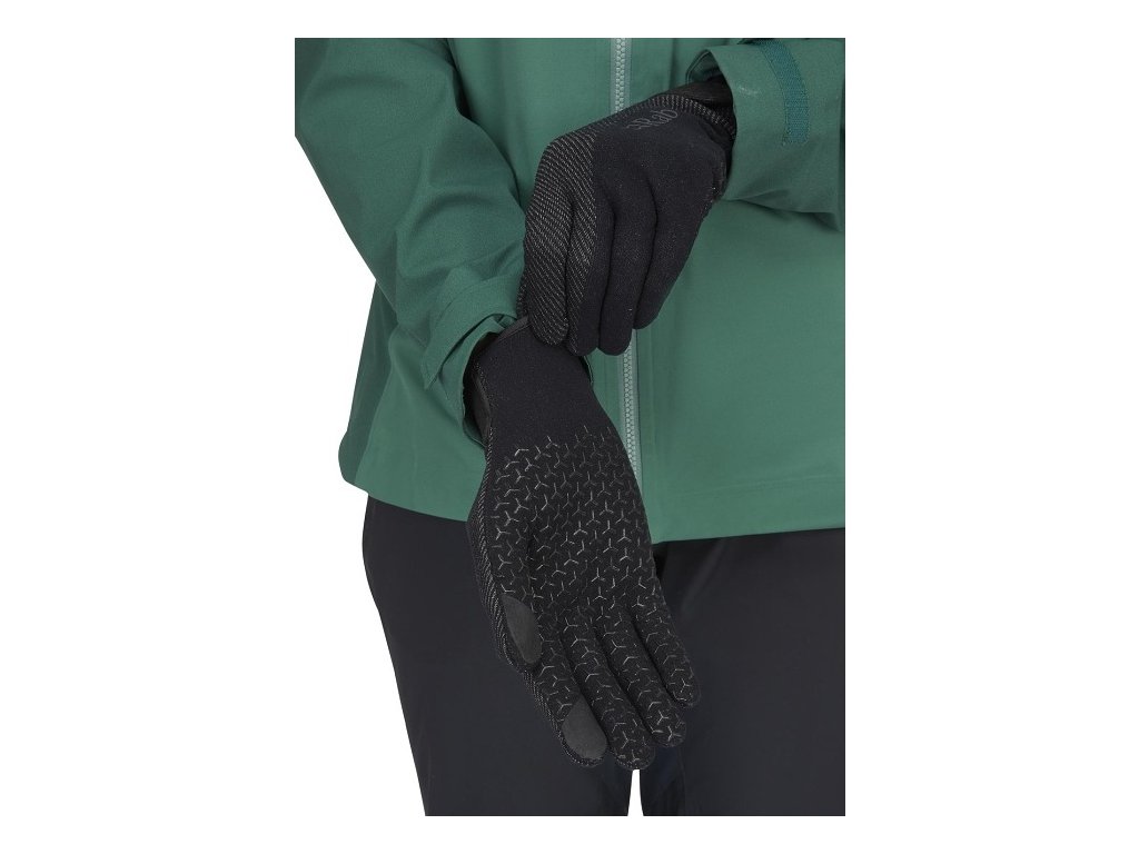Vlhkost. Ta jediná vždycky dokáže přibrzdit dokonale rozběhnutý stroj. Vlhkost. Ta zvenčí a koneckonců i ta, co pochází z vlastního těla. Obojí je na obtíž. A proto v Rabu obdařili tyto lehké a bezešvé rukavice materiálem Proflex™, který je vysoce prodyšný, nepromokavý a přitom překvapivě poddajný. A že na prstech nenajdeš žádné švy? No samozřejmě – je to příjemnější a v rukou ti zůstane lepší cit. Silikonový potisk dlaní ti potom pomůže jistojistě sevřít hole nebo cepín. A vodivý ukazováček a palec taky přijdou vhod, když se tam venku rozhodneš vzít do ruky telefon a udělat pár snímků na památku.
