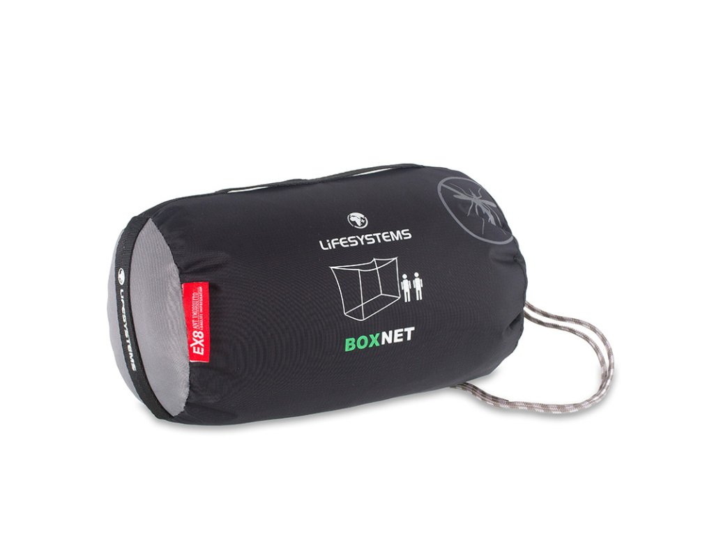 Moskytiéra pro 2 osoby, ošetřena Antimosquito impregnací EX8 . Moskytiéra je ve tvaru kvádru se 4 závěsnými body. Boxnet Double může být zavěšena pomocí všech 4 bodů nebo pomocí pouze 2 bodů. Moskytiéra je vyrobena z bílé síťoviny s hustotou zhruba 156 děr na palec. EX8 AntiMosquito využívá permethrin pro jeho repelentní a insekticidní účinky. EX8 AntiMosquito vydrží aktivní až po 2 roky nebo 20 vyprání. Všechny Lifesystems moskytiéry jsou vyrobeny z odolné tkaniny, která poskytuje vysokou odolnost a skvělou vzdušnost. Lifesystems moskytiéry převyšují svými parametry požadavky stanovené WHO.