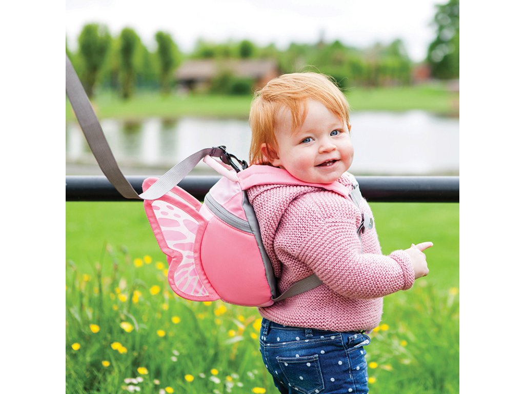 Dětský 2l batůžek s motivem motýla je určený pro děti od 1 až do 3 let. Do batůžku se vejde oblíbená hračka nebo pití na cestu. Důležitou součástí je bezpečnostní vodítko, které zajišťuje rodičům kontrolu dětí v rušných prostorách, ulicích, parku, a zároveň jim umožňuje svobodu, kterou potřebují k vybudování své vlastní důvěry.