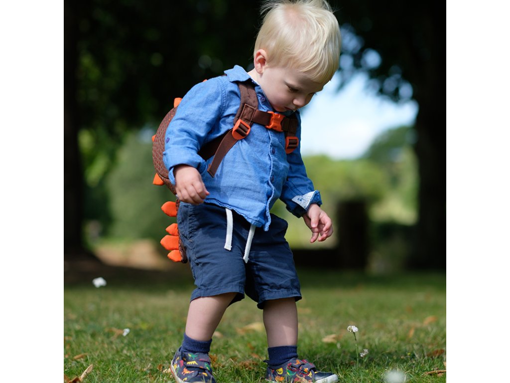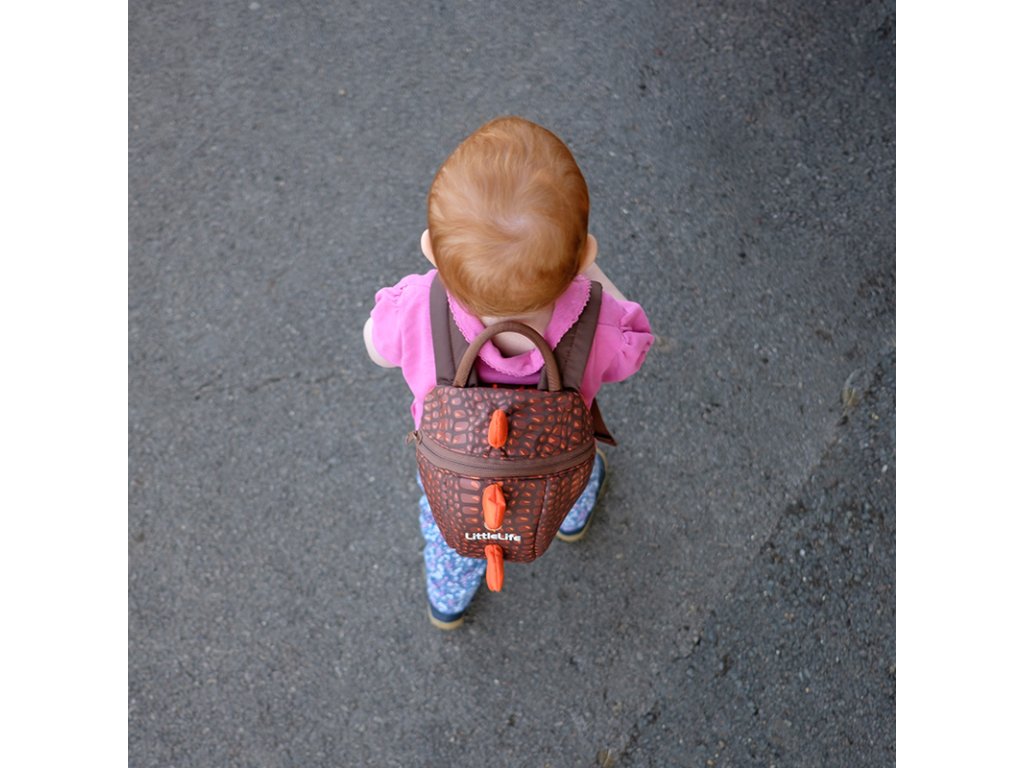 Dětský 2l batůžek s motivem dinosaura je určený pro děti od 1 až do 3 let. Do batůžku se vejde oblíbená hračka nebo pití na cestu. Důležitou součástí je bezpečnostní vodítko, které zajišťuje rodičům kontrolu dětí v rušných prostorách, ulicích, parku, a zároveň jim umožňuje svobodu, kterou potřebují k vybudování své vlastní důvěry.