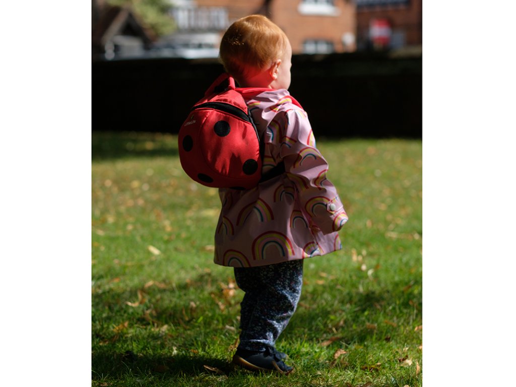 Dětský 2l batůžek s motivem berušky je určený pro děti od 1 až do 3 let. Do batůžku se vejde oblíbená hračka nebo pití na cestu. Důležitou součástí je bezpečnostní vodítko, které zajišťuje rodičům kontrolu dětí v rušných prostorách, ulicích, parku, a zároveň jim umožňuje svobodu, kterou potřebují k vybudování své vlastní důvěry.