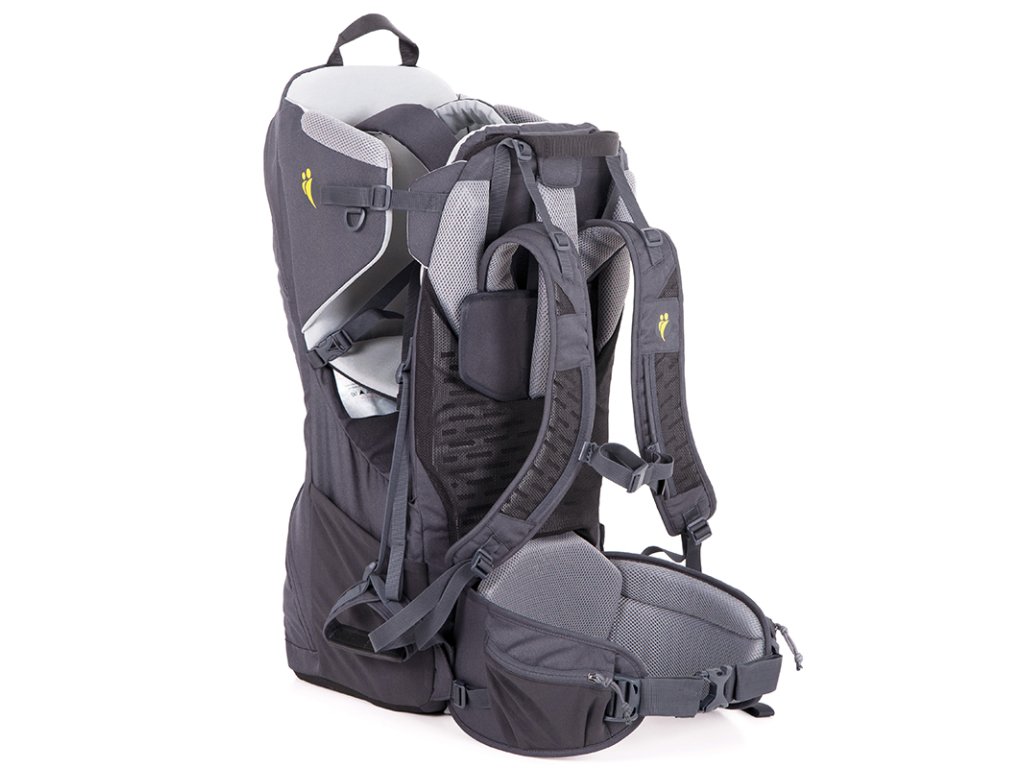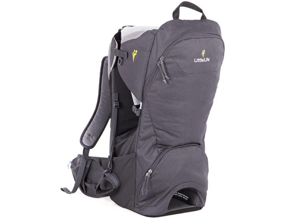 Pathfinder Child Carrier je lehká dětská sedačka navržená na delší výlety. Nabízí dostatečný úložný prostor jednak ve spodní části, a to hlavně kvůli stabilitě a celkovému rozložení váhy, ale pro potřebné doplňky můžete využít i horní kapsu na zip nebo boční síťky. V základu u nosítka LittleLife Pathfinder najdete stříšku proti Slunci, třmeny pro nohy a zpětné zrcátku pro kontrolu dítěte.