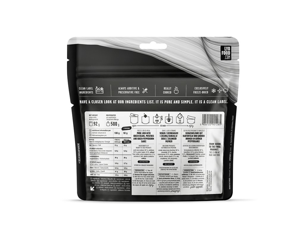 Ať už se chystáte doplnit energii v horské chatě nad oblaky nebo si jen užít dobrodružnou chvíli ve vlastní stanové restauraci uprostřed divočiny, nezapomeňte s sebou naše vepřové na zeleném pepři s bramborem. Toto pikantnější kořeněné jídlo vám do žil vpumpuje trochu nové krve.
