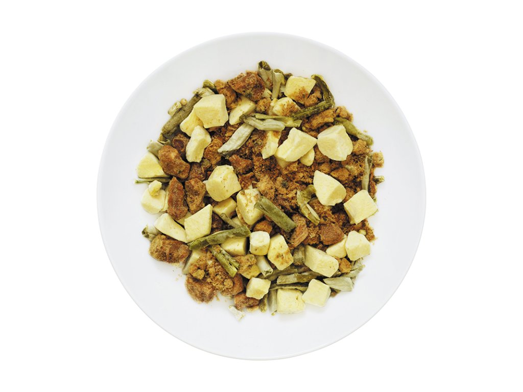 V balení nejsou žádné umělé přísady, žádné přidané cukry, žádný palmový olej a žádné konzervační látky. Jídlo je vyrobeno ze 100% přírodních surovin. Doba spotřeby jsou cca 4 roky.