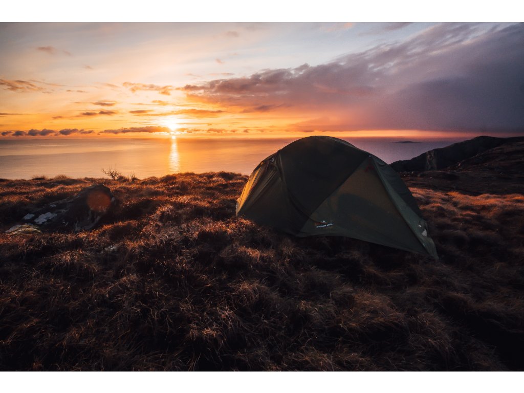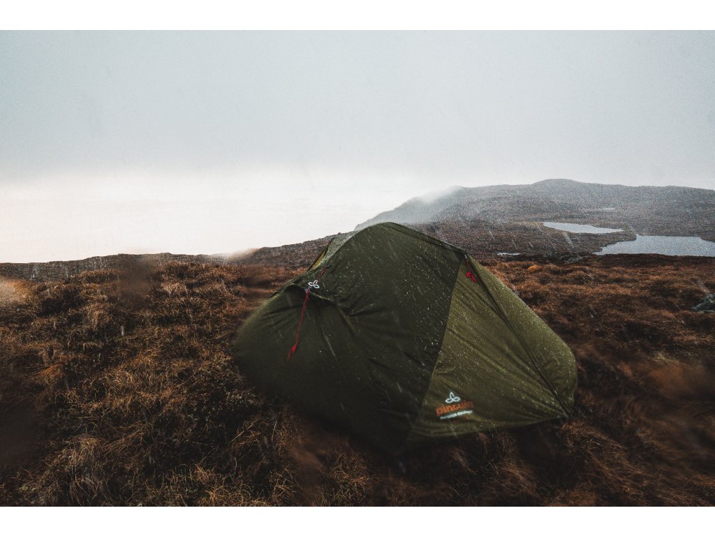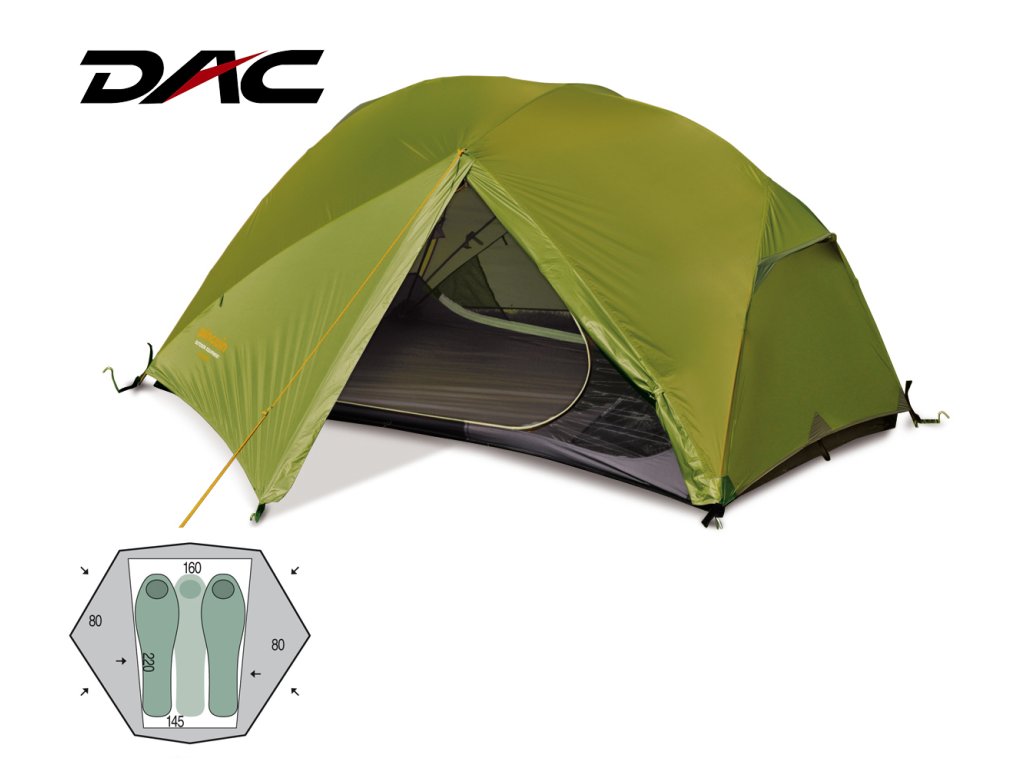 Ultralehký prostorný stan pro tři osoby se dvěma vchody a předsíňkami.