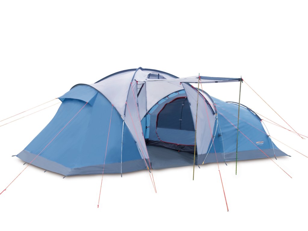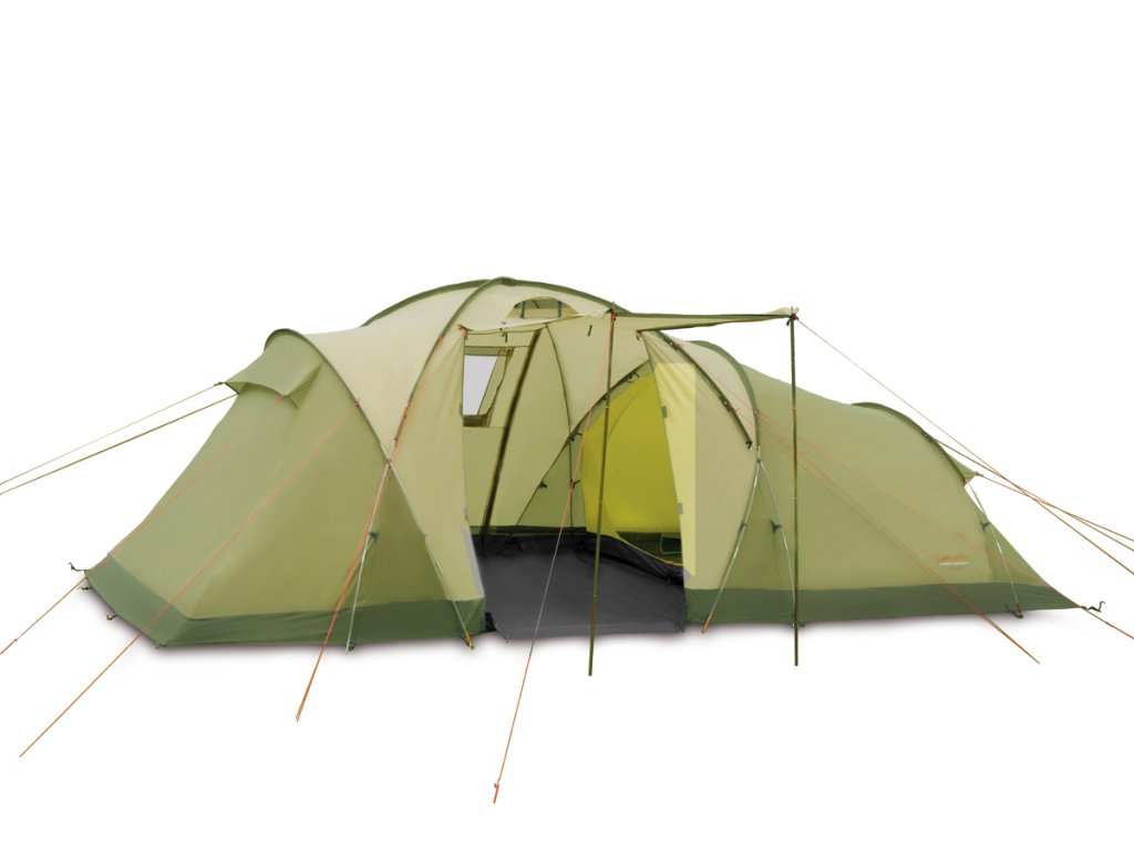 Stan Omega 6 je velkorysým prostorovým řešením pro větší skupiny nebo rodinné kempování.