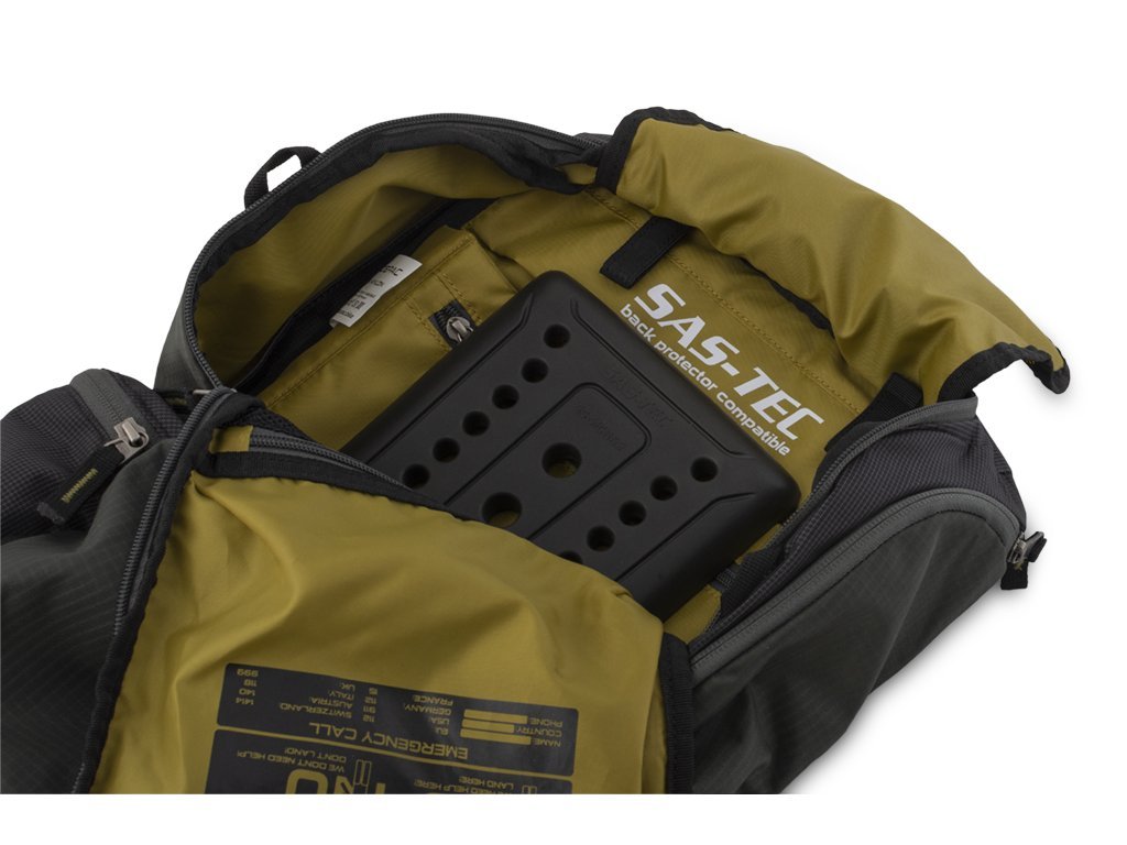 Vlastnosti: chránič není nárazem zničen a může být dále používán, je omyvatelný (po vyjmutí z batohu - pouze ruční praní / absorpce vody méně než jedno procento).