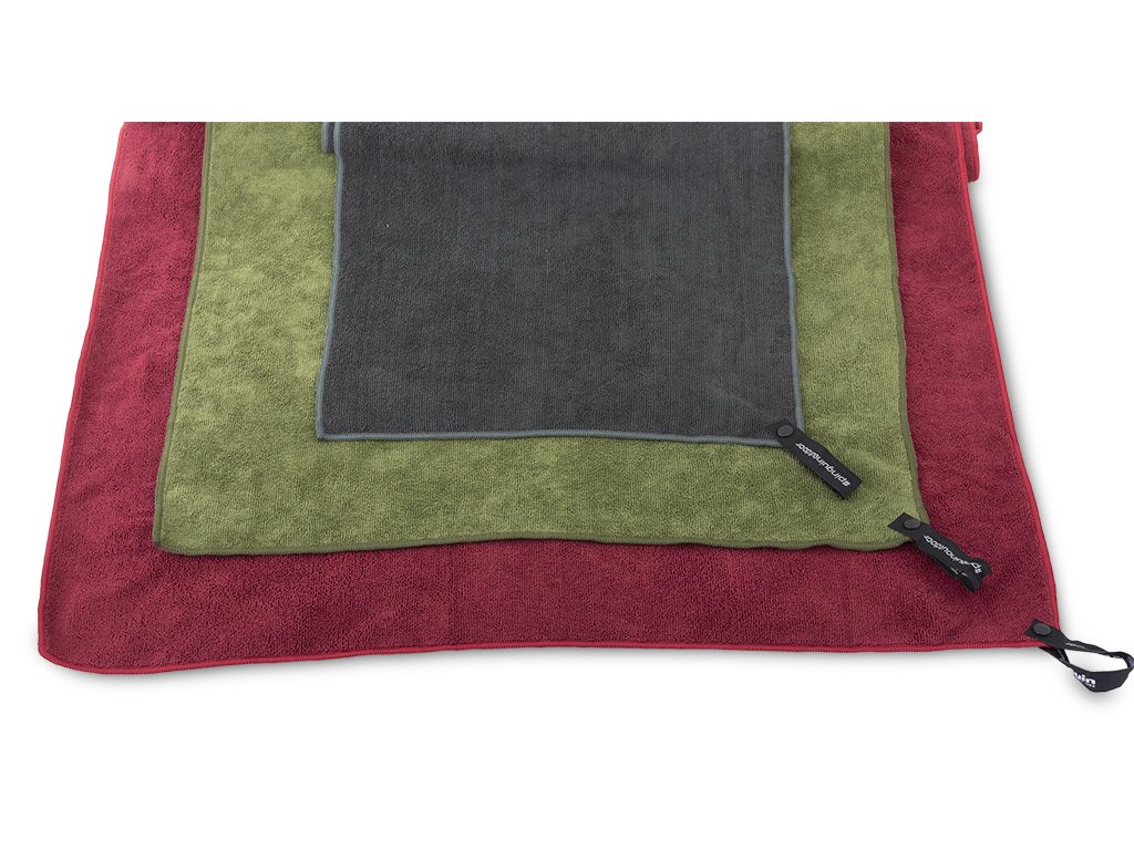 Díky poutku se sponou jej lze připevnit na batoh a sušit za pochodu.