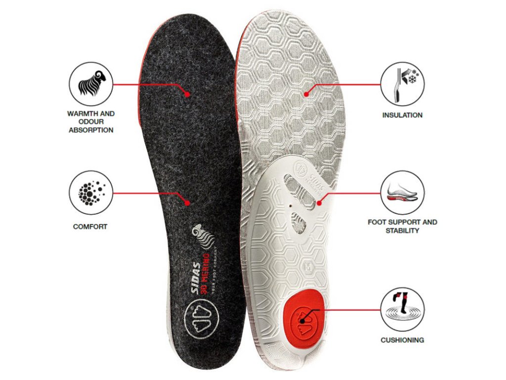 Anatomický 3D tvar udržuje nohy ve správném postavení. Izolační ALU-folie v kombinaci s merino vlnou zabraňuje pronikání chladu a úniku tepla a aktivně omezuje pachy. EVA materiál pod patou absorbuje nárazy.