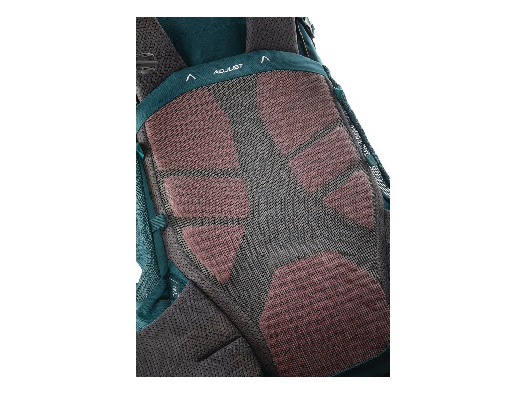 Air Contour X je zádový systém pro dlouhé dny na nohou. Flexibilní konstrukce z nylonu kopíruje kontury páteře, rozkládá zatížení mezi ramena a bedra a díky torzní flexi se batoh přizpůsobuje pohybům těla v členitém terénu. Polstrování z EVA je rozčleněné kanálky a umožňuje tak vzduchu proudit mezi batohem a zády.