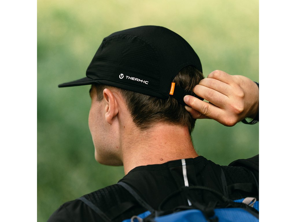 - Nastavitelný pásek vzadu pro perfektní uchycení, pásek má pružný díl, takže běžecká čepice sedí velmi dobře