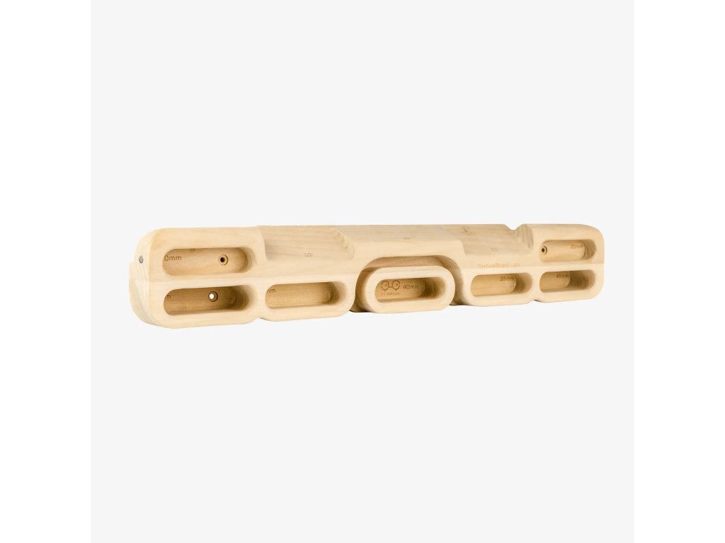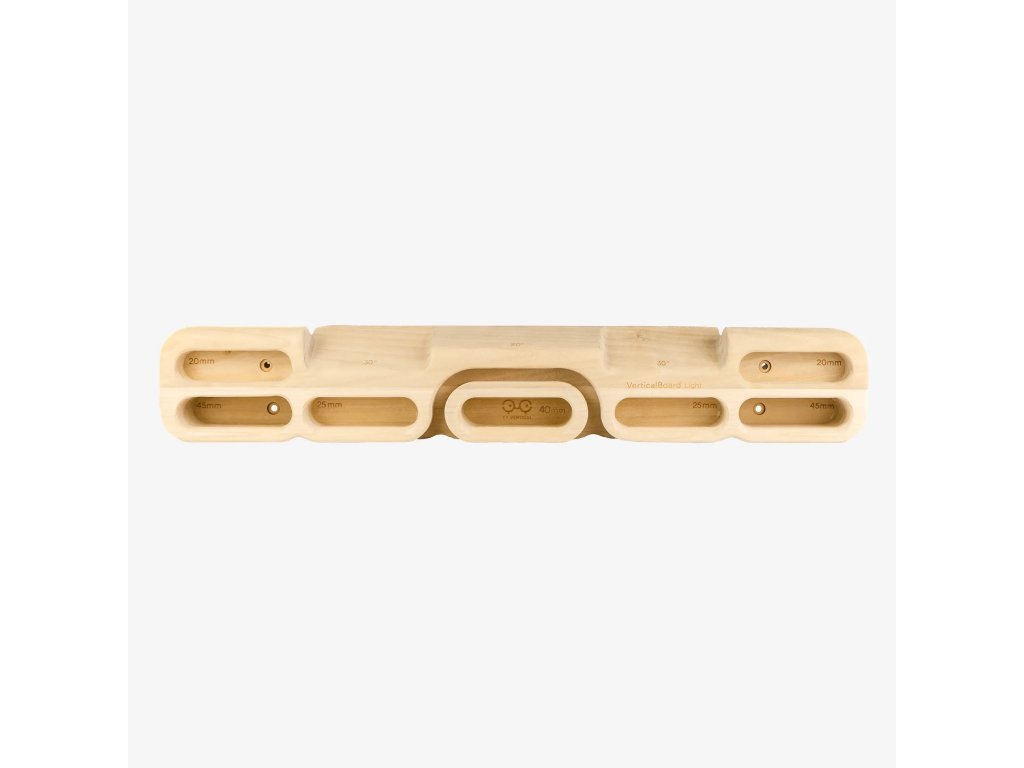 Variabilita úchopů: Deska nabízísedm různých úchopů, včetně kapes pro čtyři prsty o hloubkách 45 mm, 25 mm a 20 mm, centrálního úchopu o hloubce 30 mm a dvou sklonů 30° a 20°, což umožňuje cílené posilování různých svalových skupin a zlepšování techniky úchopu.